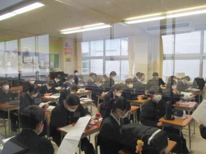 今日から期末考査。教室に入った生徒から、ワーク等を見ながら最終確認をしていました。