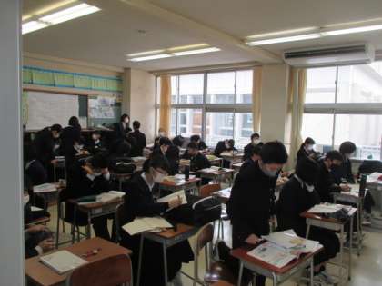 期末考査最終日。教室に入った生徒から1限からのテストに向け最終確認をしていました。