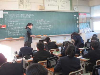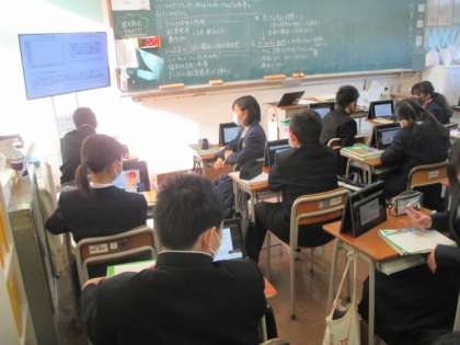 社会の授業で、なぜアフリカの国々は特定のモノの生産、輸出をしているのかについて学んでいました。クロムブックを使用してデータを見たり、グループで意見交換したりしながら進めていました。