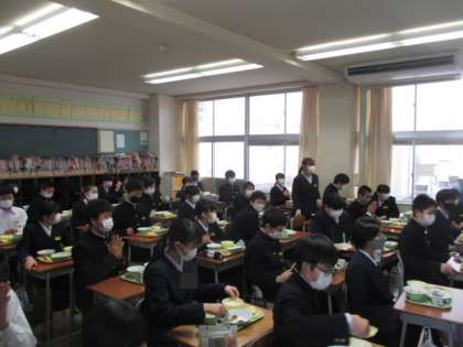 12月22日(水)1年 給食の様子 公開日 2021/12/22 更新日 2021/12/22 学校生活 準備がたいへん早くなりました。そして、配分量を調整して、食べ残しが少なくなるようにしていました。