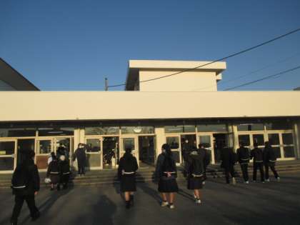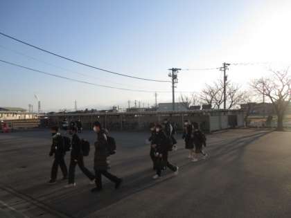 12月23日(木)登校時の様子 公開日 2021/12/23 更新日 2021/12/23 学校生活 青空が広がる朝となりました。今日はこの生徒玄関から登校する最終日。軽やかに足早に中に入っていきました。 今日の午後から、机・椅子等の移動があります。