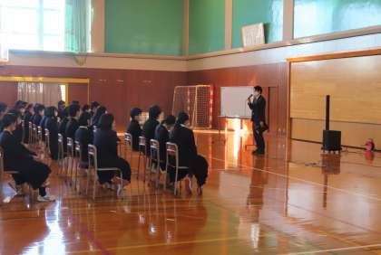 学年集会の後半は、冬休みの生活、学習についての話がありました。また、学年主任からの話もありました。
