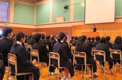 校長先生のお話を聞きながら、学校行事が目白押しだった2学期を振り返ることができました。修学旅行や校外学習、合唱コンクール、道徳の時間、生徒会活動…和中生の活躍がたくさんありました。