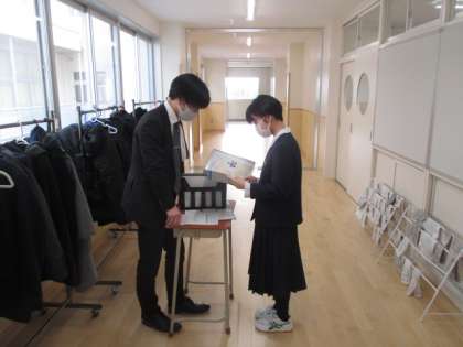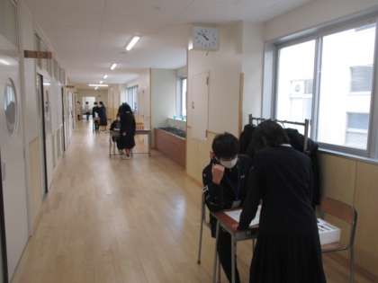 終業式の後教室に戻り、担任から通知表をもらいました。振り返りをしっかりとして、3学期につなげましょう。「前」向きな考え方を大切に!