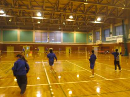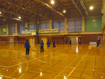 午後の部活動の様子です。ソフトテニス部女子が体育館で、男子が教室で活動していました。