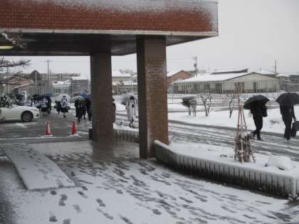 1月12日(水)登校時の様子 公開日 2022/01/12 更新日 2022/01/12 学校生活 数センチの積雪がありました。新しい生徒玄関の登校にも慣れてきたようですが、降雪や積雪、凍結の日は、これまでよりも時間にゆとりをもって登校しましょう。