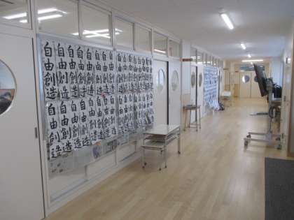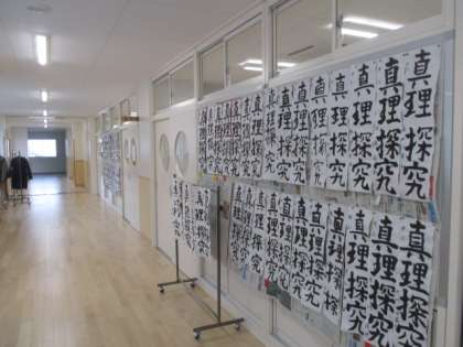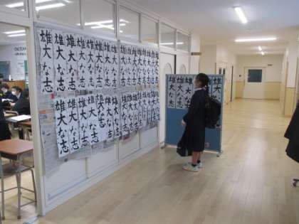 昨日書初大会があり、それぞれの気持ちの入った作品が展示されています。
