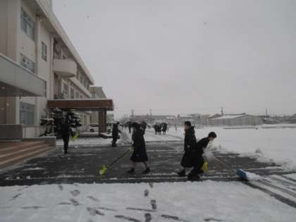 1月13日(木)登校時の様子 公開日 2022/01/13 更新日 2022/01/13 学校生活 10センチほどの積雪があり、1年3組の皆さんが除雪当番として活躍していました。ありがとうございました。