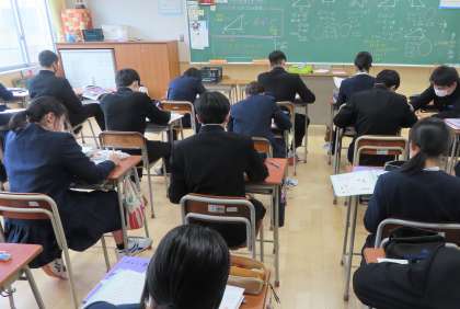 1月17日(月) 3年・授業の様子!! 公開日 2022/01/17 更新日 2022/01/17 3年生 黙々と課題に取り組んだり、分からないところを教え合ったり、毎日の授業を大切に取り組んでいます。まずは1週間後の第6回実力テストに向けて、本気で頑張りましょう!! 本日、「第5回進路希望調査」「進路懇談会(2月)の案内」を配布しました。ご確認ください。