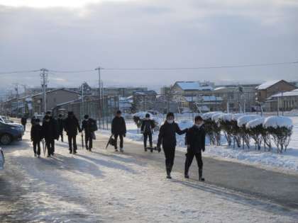 冷え込みの厳しい朝となりました。雪が残っている箇所もあり、足元に気を付けながら登校してきました。