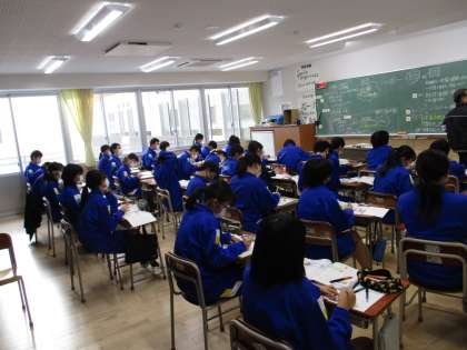 1月20日(木) 2年 授業の様子 公開日 2022/01/20 更新日 2022/01/20 2年生 本日の授業の様子です。社会では、「帝国主義と日本」を学習しました。英語では、新出単語をモニターにうつし、発音練習を行っています。体育では、北辰館で柔道をしています。