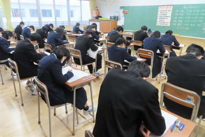 1月24日(月) 3年・第6回実力テスト!! 公開日 2022/01/24 更新日 2022/01/24 3年生 3年生は1〜5限に第6回実力テストを実施しています。このテストにかける意気込みは今まで以上で、最後まで集中して取り組んでいました。明日以降、答案が返却されたらしっかりと見直しをして、次につなげましょう!!