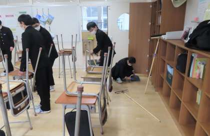 1月25日(火) 清掃時間の様子!! 公開日 2022/01/26 更新日 2022/01/26 3年生 新しい清掃時間のスタイルになって、3週目に入りました。この流れも定着しつつあります。放課後の時間を大切にしていきましょう!!