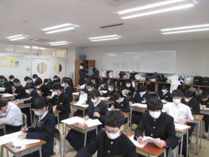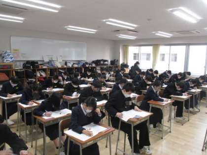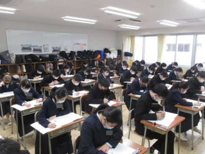 2月3日(木)1年 授業の様子 公開日 2022/02/03 更新日 2022/02/03 学校生活 1年生は、5教科の実力テストを一日で実施するのは初めてでした。解答用紙が返却されたらしっかりと見直しをしておきましょう。