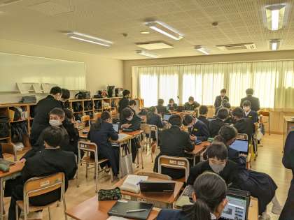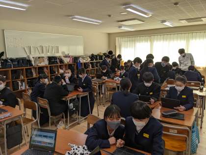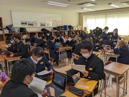 2月7日(月) 1学年総合的な学習の時間「富山市の未来」 公開日 2022/02/07 更新日 2022/02/07 1年生 2月9日に行われる「富山市の未来」のクラス発表に向けて、最終打ち合わせをしています。