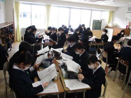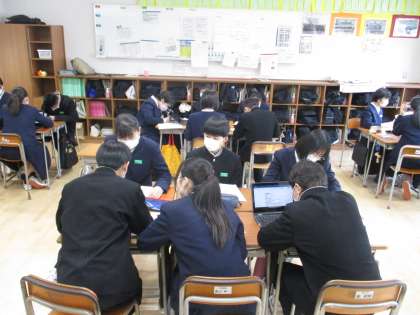 本日は平和学習を行いました。原爆が落とされる前の広島の様子を資料を使って学びました。また、今日の授業では実行委員が中心となりグループ活動やクイズを進めていました。