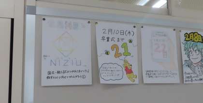 2月15日(火) 3年・卒業までのカウントダウン!! 公開日 2022/02/15 更新日 2022/02/15 3年生 和合中学校に登校するのは、昨日であと20日でした。明日からは、中学校生活最後の定期考査となる学年末考査が始まります。また、午後からは最後の進路懇談会です。 卒業後の進路に向けて、頑張りましょう!!