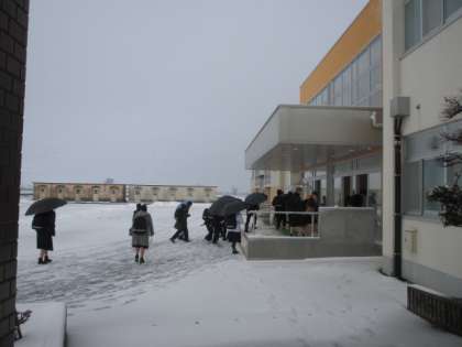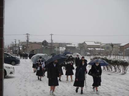 数センチの積雪がありました。これから明日にかけて積雪が予想されています。余裕をもって登校しましょう。