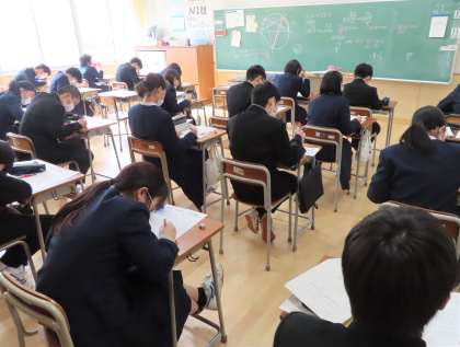 2月21日(月) 3年・授業の様子!! 公開日 2022/02/21 更新日 2022/02/21 3年生 3年生の授業は総まとめのプリント学習が増えていますが、どの教科もどのクラスも集中して取り組んでいます。卒業後の進路に向けて、みんなで頑張る雰囲気を大切にしていきましょう!!