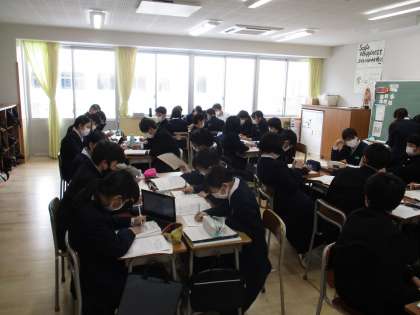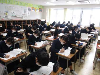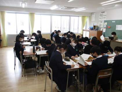 2/22(火) 2年 授業の様子 公開日 2022/02/22 更新日 2022/02/22 2年生 本日の平和学習の様子です。資料を読みながら、実行委員が作成したワークシートを記入し進めていきました。最後まで真剣に取り組んでいました。