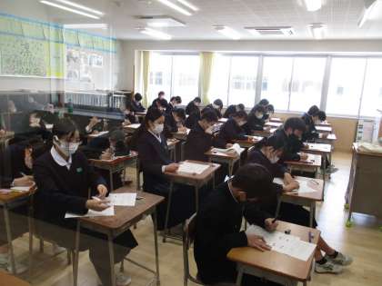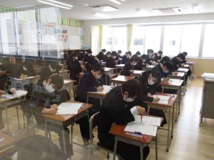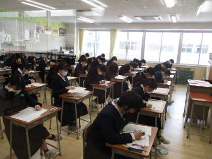 本日は、学年末考査1日目でした。1限目から、音楽、保体、国語の順でテストを受けました。各教科最後まであきらめず、全力で取り組んでいました。残り2日間、来年の自分の姿を想像して、万全の準備をしましょう!!