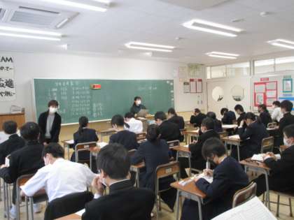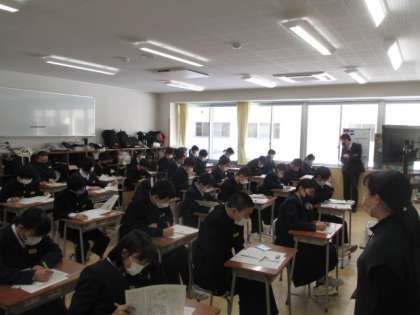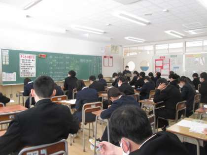 2月25日(金)1年 授業の様子 公開日 2022/02/25 更新日 2022/02/25 学校生活 学年末考査2日目。保健体育、社会、美術のテストがありました。月曜日は、国語、英語、音楽の3教科です。有意義な土、日にしましょう、