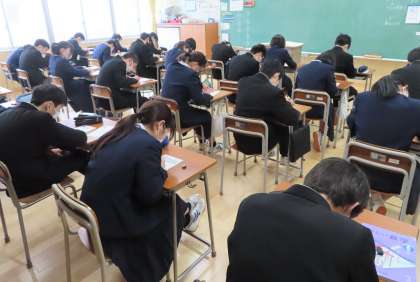 県立高校一般入試を1週間後に控え、3年生は今まで以上に集中して問題に取り組んでいます。先日行った実力テストの見直しや毎回のプリント学習の問題を丁寧にやり切りましょう!!
