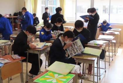 3月11日(金) 3年・思い出を振り返る…!! 公開日 2022/03/11 更新日 2022/03/11 3年生 今日、卒業アルバムを配布しました。懐かしい写真を見て思い出を振り返ったり、友だちからメッセージをもらったり…楽しい時間となりました!!