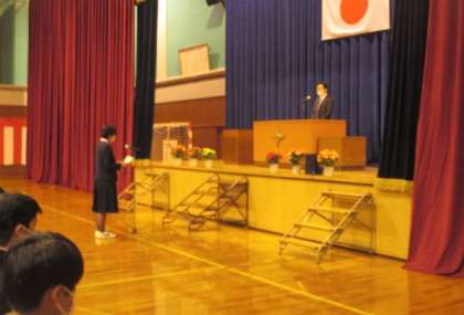 同窓入会式、PTAと教育文化後援会からの記念品贈呈式を行いました。