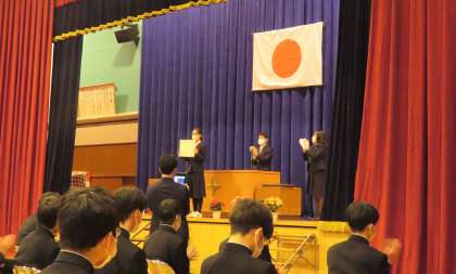 3月14日(月) 受賞伝達式等を行いました 公開日 2022/03/14 更新日 2022/03/14 学校生活 受賞伝達(燕野賞、県中文連表彰、県中体連表彰、富山県をよくする会表彰)と修了証授与式を行いました。