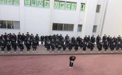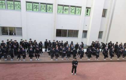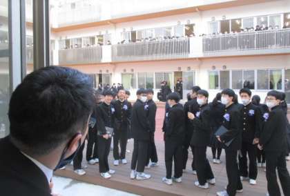 リモートで卒業式を見守ってくれていた、1・2年生に直接感謝の気持ちを伝えました。この新校舎だからこそ実現できた、最後の対面です。
