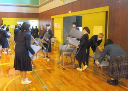 準備や片付けは各クラスの集会担当が行ってくれています。テキパキと活動していて、さすがです!!