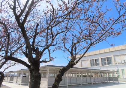 暖かい陽気で和合中学校の桜のつぼみはぐっと膨らみました!!土曜日の記事「4月2日(土) 開花間近!?」と比べると、ピンク色も濃くなっています。