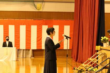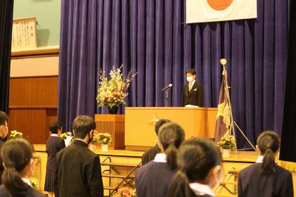 4月8日(金)入学式の様子 4 公開日 2022/04/08 更新日 2022/04/08 学校生活 新入生の代表が誓いのことばを堂々と読み上げました。本校の「信条」についても触れられていました。代表生徒とともに全員でしっかりとした礼ができていました。
