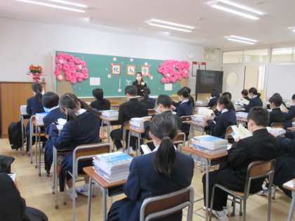 4月8日(金)入学式の様子 6 公開日 2022/04/08 更新日 2022/04/08 学校生活 新入生は教室に戻り、担任の話、教科書等の配布、諸連絡がありました。 内容の確認と、提出物の準備をしっかりとしておきましょう。 画像上:1組 画像中:2組 画像下:3組