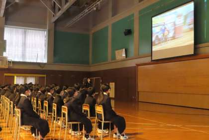 4月11日(月) 交通安全教室 公開日 2022/04/11 更新日 2022/04/11 学校生活 5限に体育館で交通安全教室を実施しました。 学校北側に広い道路ができ、通学路を一部変更しました。今日の教室を生かし安全に登下校しましょう。