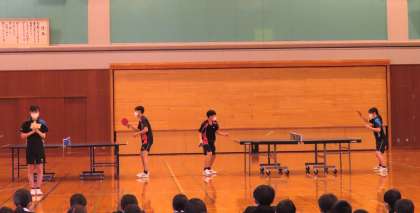 4月12日(火) 部活動紹介 その2 公開日 2022/04/12 更新日 2022/04/12 学校生活 温かい拍手したり、礼を返したりと各部からの紹介を聞く1年生の態度は立派でした。 (写真 上:卓球部 中:バレーボール部 下:陸上競技部)