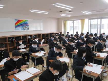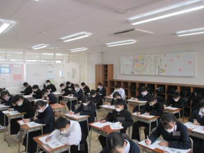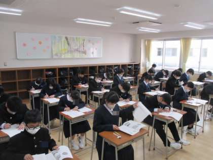 市学力調査の2日目。今日は社会と英語が行われました。5分前の着席もできていました。