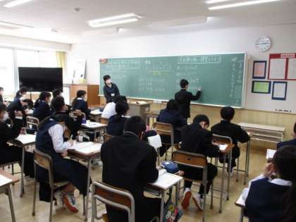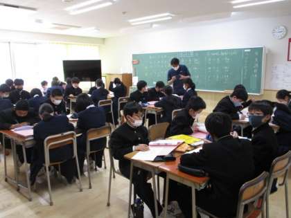 4月20日(水) 1年 授業の様子 公開日 2022/04/20 更新日 2022/04/20 1年生 学校にも慣れはじめ、各教科の授業も進み始めてきました。先生の話を真剣に聴いたり、積極的にグループ活動を行っていました。 画像上:1組 理科、中:2組 英語、下:3組 数学