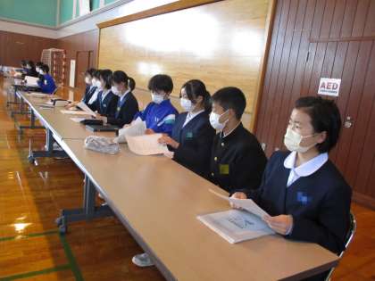 4月28日(木) 放課後の様子 公開日 2022/04/28 更新日 2022/04/28 学校生活 ノー部活動デーの放課後。生徒会のメンバーは明日の総会に向けてリハーサルを行いました。準備、進行、片付け、すべて執行部を中心に生徒の力で進めます。 5月2日の本番も頑張って下さい。