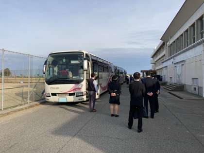 バスを見送りました。修学旅行でしか学べないことを、たくさん経験してきてください。いってらっしゃい!