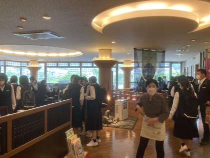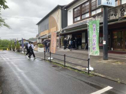 小雨の降る中、滋賀県大津市にある昼食会場に到着しました。