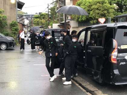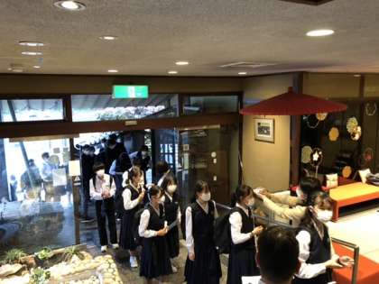 課題別学習が終わり、夕食会場に集合完了。全員元気です。