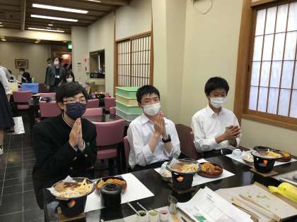 2組の様子です。八ツ橋庵とししゅうやかたで昼食を食べています。