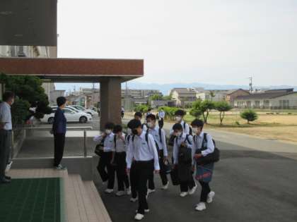 6月1日(水)登校時の様子 公開日 2022/06/01 更新日 2022/06/01 学校生活 今日から6月。登校してくる生徒の服装も白色が基調となってきました。 今日2年生の14歳の挑戦は全ての事業所で実施されているため、2年生の登校姿もなく少し寂しさを感じました。
