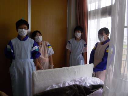 福祉用具・シーツ交換や入所されている方の食事の介助をしました。