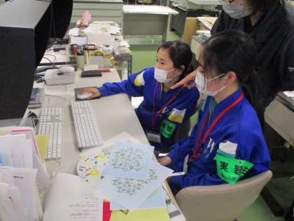 専用ソフトを使って、オリジナルうちわのデザイン画作成に挑戦しています。