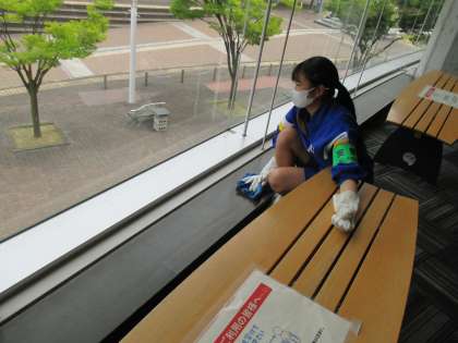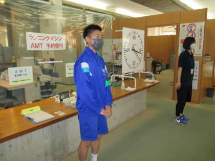 富山市総合体育館では、受付業務や清掃を行っていました。