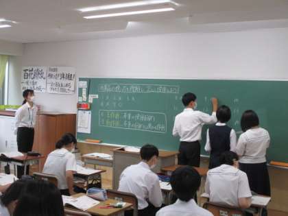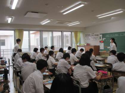 教育実習生の保健の授業です。医薬品の利用について、意見交換したり、プリントにまとめたりしながら真剣に取り組んでいました。