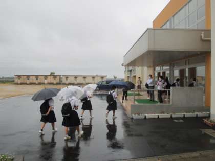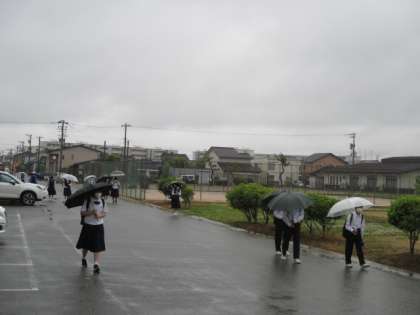 6月6日(月)登校時の様子 公開日 2022/06/06 更新日 2022/06/06 学校生活 雨が降るひんやりとした朝となりました。 今日は、給食後すぐ下校です。午後の時間を有意義に過ごしましょう。